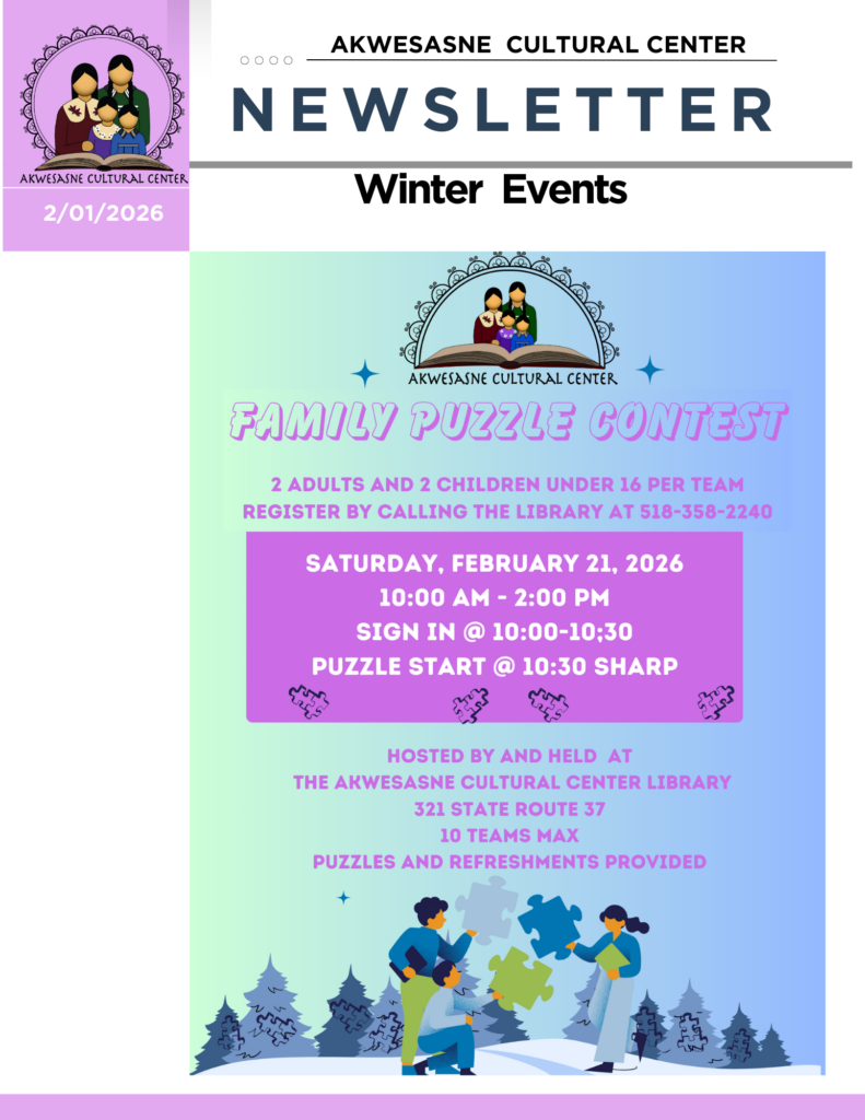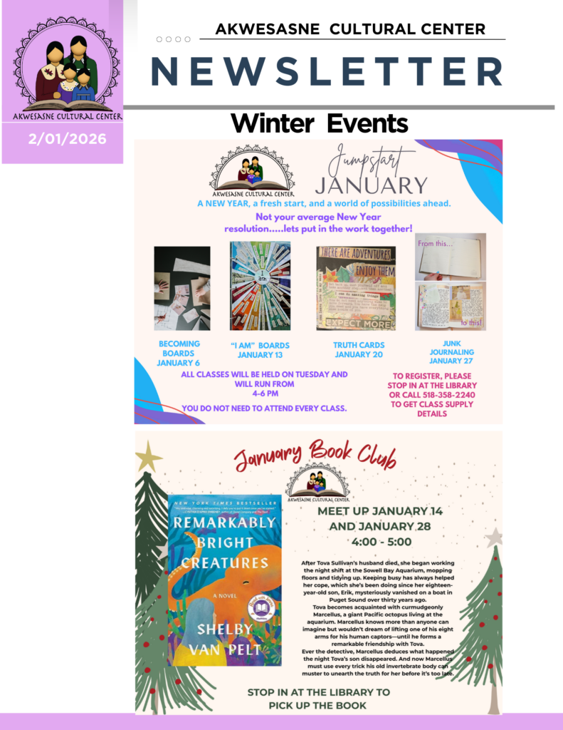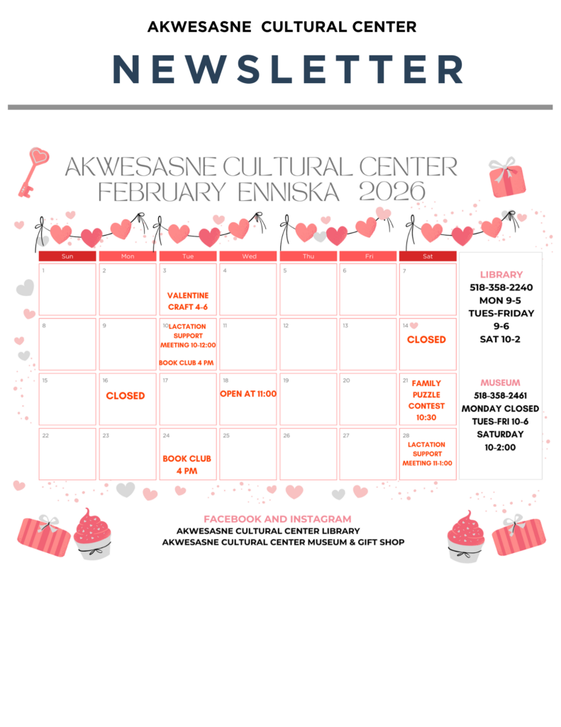 The Akwesasne Cultural Center has a new vibrant makeover. Come check out our newly improved exhibits with displays that amplify our rich culture, strikingly beautiful artwork by passionate community members, and experience new audio and visual devices that convey Akwesasne’s enduring culture. Check out the ever growing collection of cultural information and books.